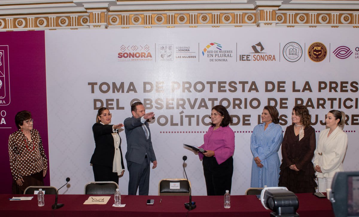 Toma de Protesta de la Presidencia del Observatorio de Participación Política de las Mujeres, fueron testigos la Magistrada Presidenta Alejandra Velarde Félix, la Magistrada Ana Maribel Salcido Jashimoto y el Magistrado Vladimir Gómez Anduro.